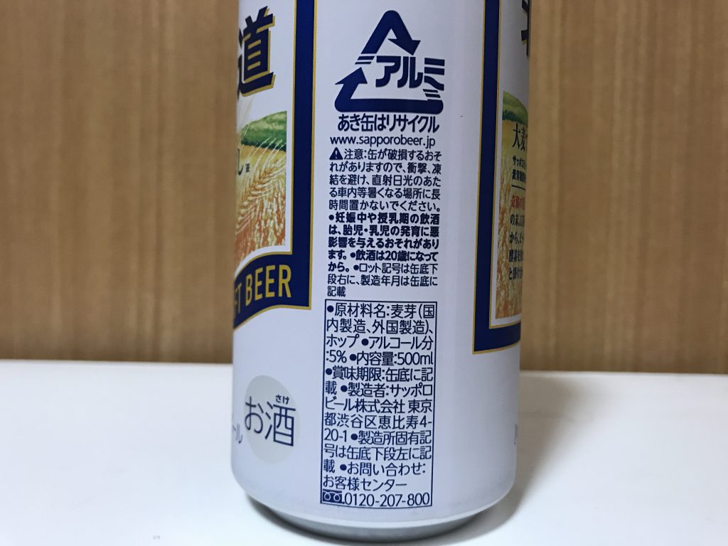 原材料は麦芽とホップのみ。いわゆるプレミアムビールです。サッポロのこういった企画系のビールは、コーンスターチなどの副原料が使われている印象がありましたが、今回のビールは100%ビールのようです。